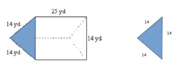 and the volume of the triangular prism is just the area of the triangular face times the length of 25.