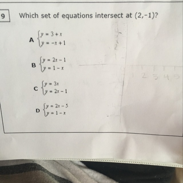 The answer is D, because if you plug in (2,-1) in all of them, only the last one works.