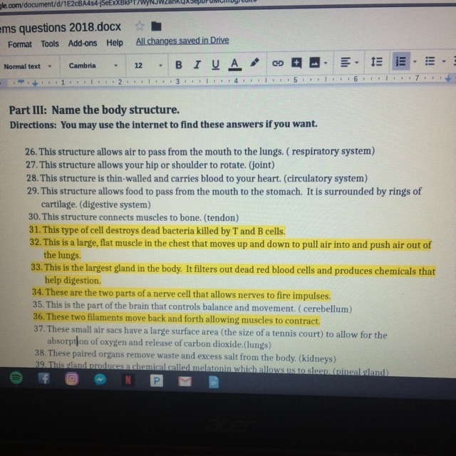 Please help me with the highlighted questions I need to know what the name of the body structure is