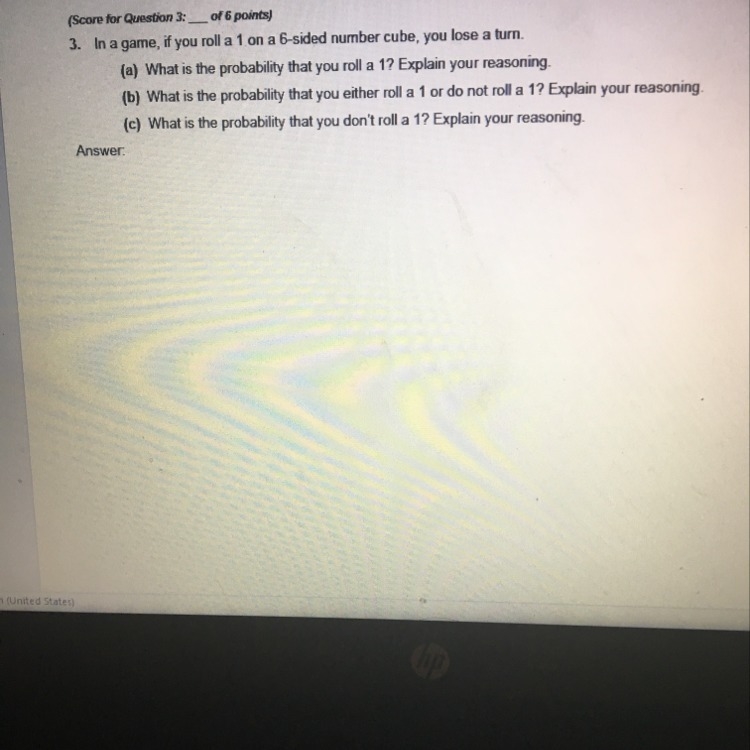(A) The probability that you roll a 1 would be 1/6 because there are six sides of a dice and only one is a 1.