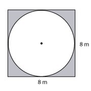 To find the shaded area, we need to subtract the area of the circle from the area of the square. First, let's find the area of the square by multiplying 8 x 8, which gives us 64 or the area of the square. Next, we need to find the area of the circle. We know that the radius is 4 (half of the diameter, 8), so this will be easy. Plug it into the formula and solve: pi x 4^2 | 16pi. Now, all we have to do is subtract 16pi from 64. This leaves us with 13.735 for the shaded area (can round decimal to tenth = 13.7, hundredth = 13.74).