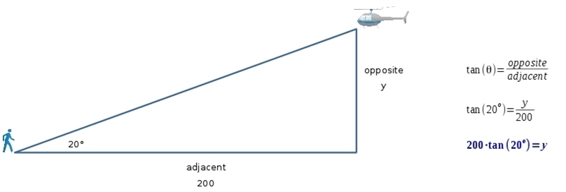 A helicopter is hovering over a landing pad 200 feet from where you are standing. The helicopters angle of elevation with the ground is 20 degrees. How far is the helicopter fro…