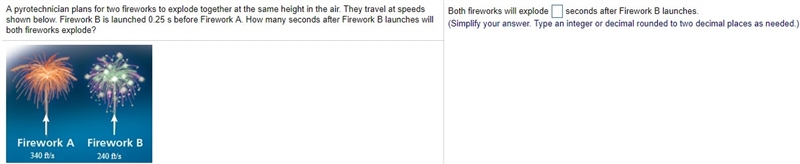 Answer: Firework B will explode at 0.85 seconds after it is launched.