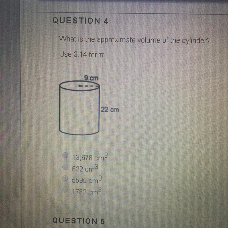 3.14 x 9^2 x 22 = 5595.48 =