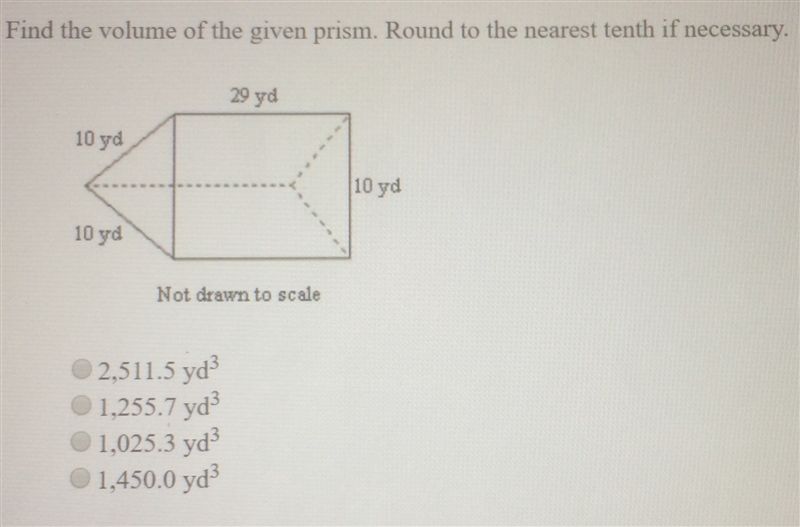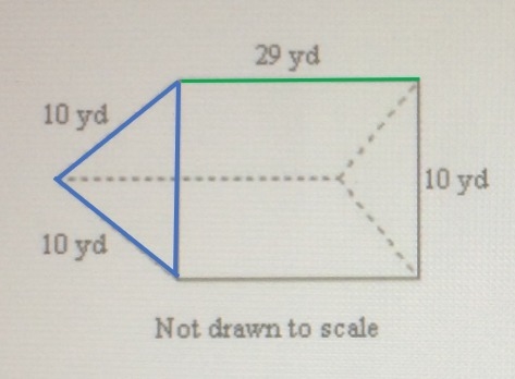 . We also know that l, the length of the prism/rectangular side (outlined in green in the picture), is 29yd. Knowing A and l, we can plug these values into the equation for the volume of a triangular prism to get your answer:
