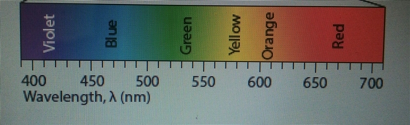 Visible light with a wavelength of 480 nm appears Question 33 options: Violet Green Blue Red