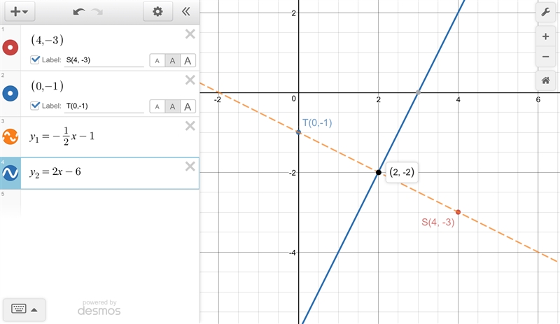 (S +T)/2 = ((4, -3) +(0, -1))/2 = (4/2 -4/2) = (2, -2)