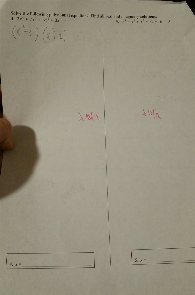 x = -1, 2, -(√3)i, (√3)i