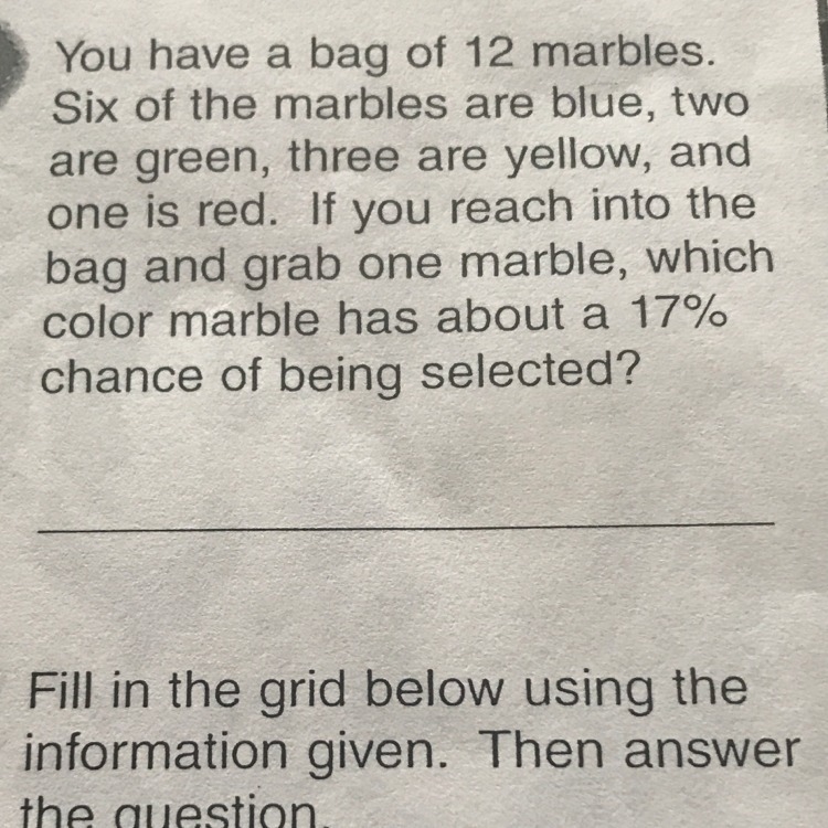 Green has a 17% chance of being selected bc 2/12 is .16666 which rounds to .17