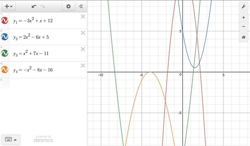 I know you know how to use Desmos to graph these. You can also write a little spreadsheet program to compute the discriminant b^2 -4ac, or do it the hard way.
