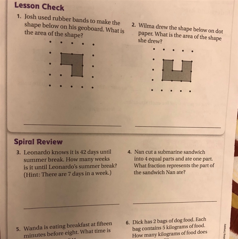 1. you can cut this in half to make a 2 by 3 rectangle and a 2 by 2 square. 2 times 2 is 4. 2 times 3 is 6. 6 plus 4 is 10 which is the area.