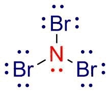 Draw Nitrogen in center surrounded by Br atoms and connect them with single bond and subtract 2 electrons/bond from total electrons. As there are three single bonds formed so subtract 6 electrons from total valence electrons.