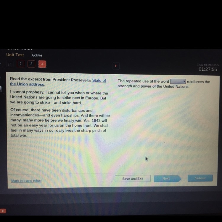 The repeated use of the word reinforces the strength and power of the United Nations? we strike cannot many