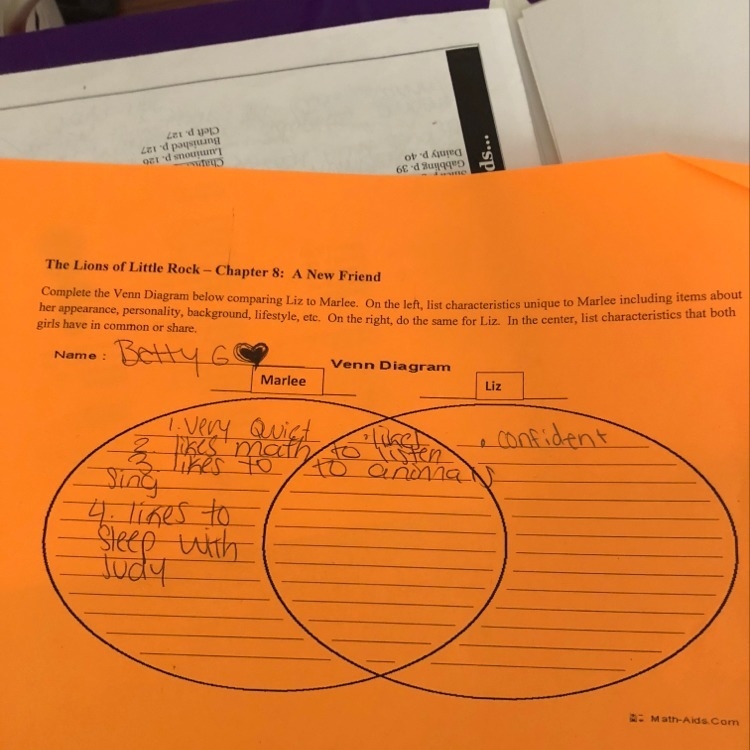 If your read the book the lions of Little Rock , please can you help me with comparing and contrasting Marlee and Liz !! Thanks and for a brainless answer !!