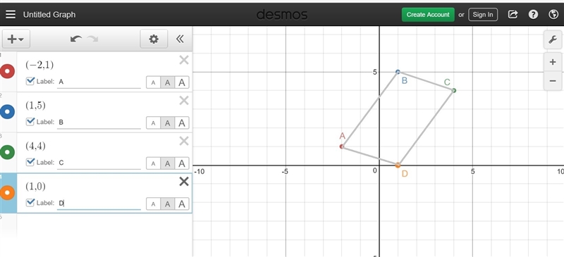 A(-2,1), B(1,5), C(4,4), D(1,0)