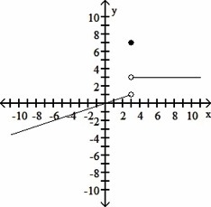 The limit as x approaches 3 from the left is observed based on the upward sloping line. If we observe beginning from x = 2 to x = 2.5 to x = 2.9, drawing closer to 3, we can see that it approaches the point (3, 1), so the limit is the y-value of 1.