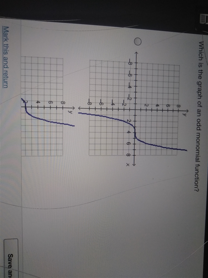 Odd function must be rotational symmetry around origin. So last option is not correct.