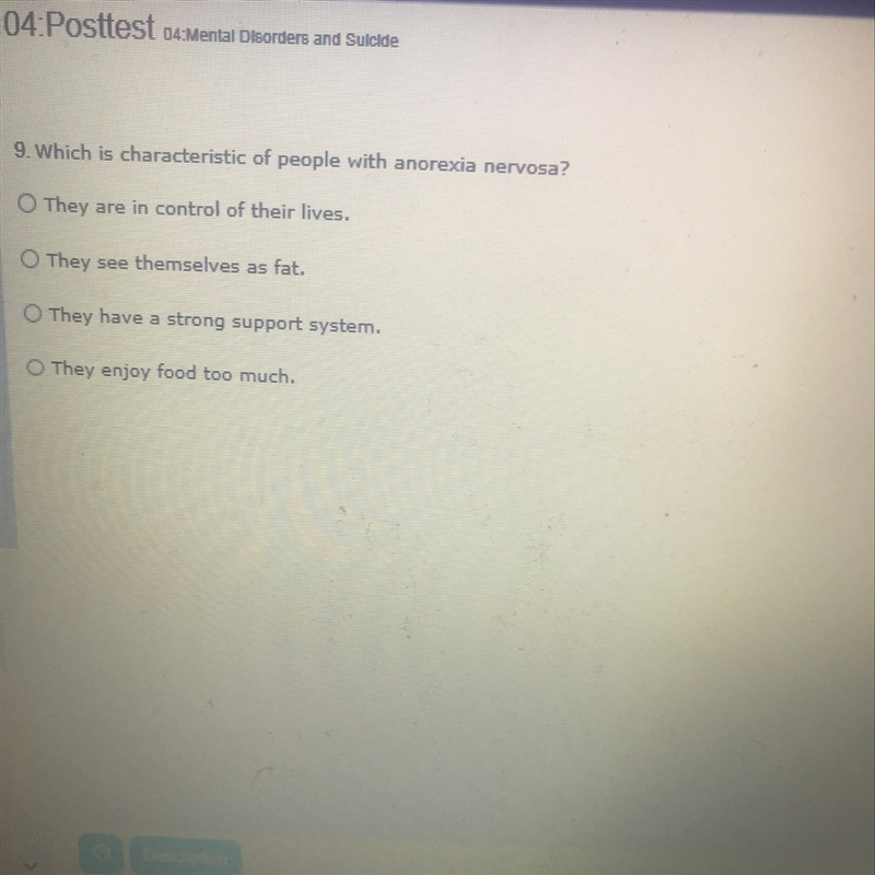 Which is characteristic of people with anorexia nervosa URGENT PLEASE HELP