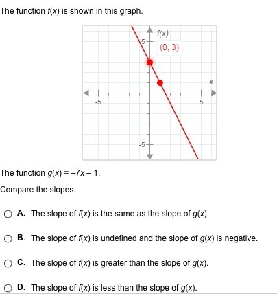 C because the slope of f(x) is -2, and the slope of g(x) is -7