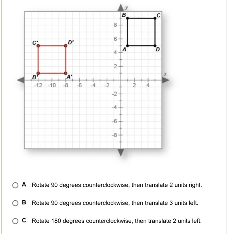 Answer: B) 90° counterclockwise, translation 3 units to the left.