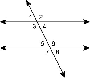 Lastly, adjacent angles are angles opposite each other that share the same parallel line but are dissected by the transverse line. These angles share the same measurement. ∠1 and ∠5 do not share the same parallel line. An example of these angles would be ∠1 and ∠4.