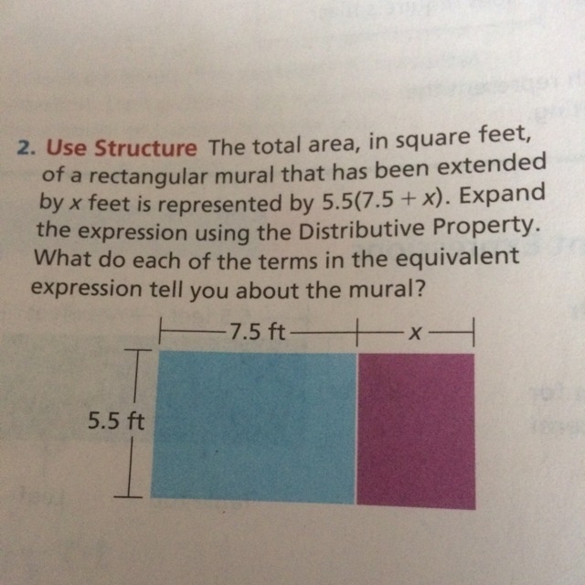 41.25 is the area of the blue part of the mural, and 5.5x is the area of the red part of the mural.