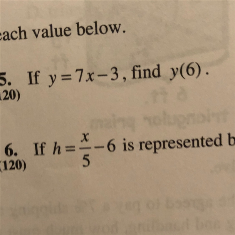 So y(6) means 7x - 3 = 7*6 - 3 = 39
