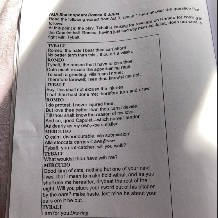 From this extract how does Shakespeare present Tybalt as violent-example-1