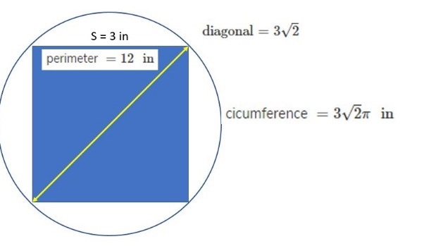 Using the Pythagorean Theorem we can find the length of the squares diagonal which is also the diameter of the circle: