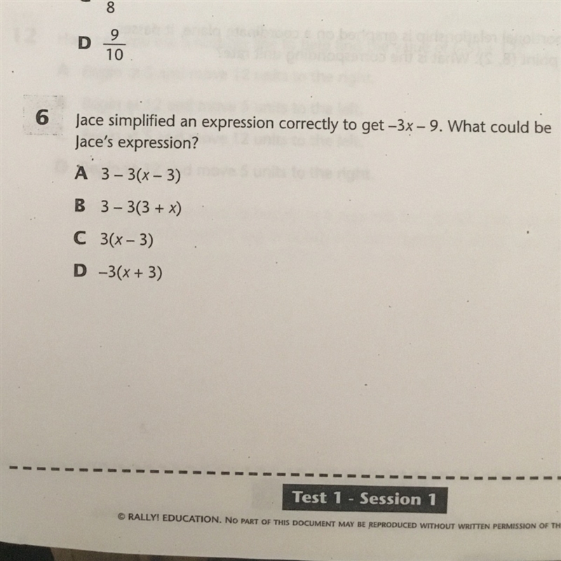 the answer is D. distribute the -3: -3 multiplied by c is -3x. -3 multiplied by 3 is -9. together, it’s -3x-9