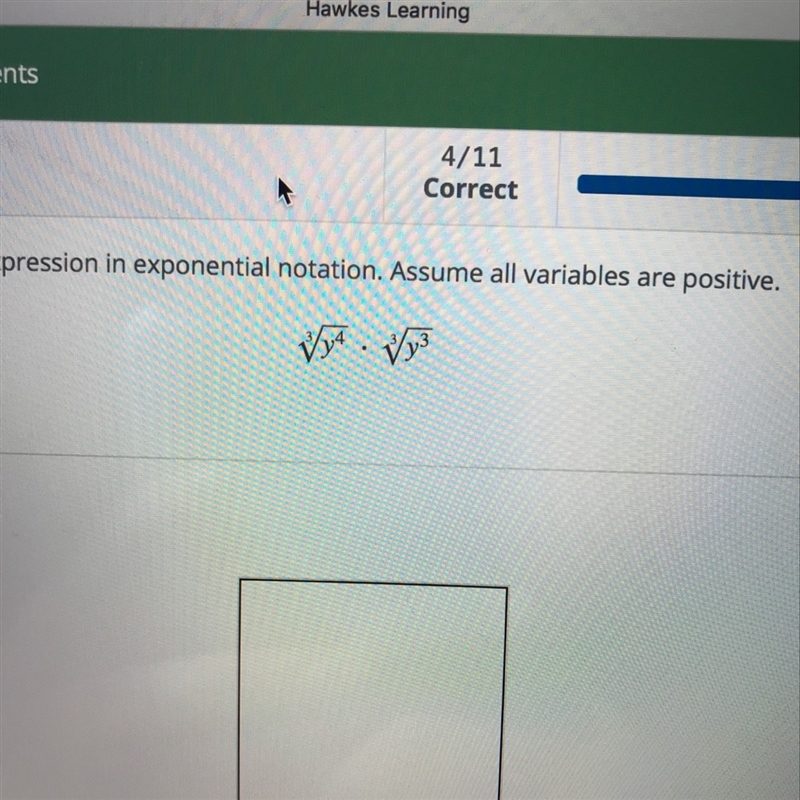 The answer is 1 because since the variable "y" has an invisible one in front of it, 1 to the power of anything stays "1".