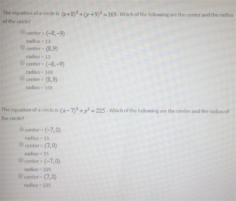 (x+8)^(2) + (y+9)^(2) = 13^2