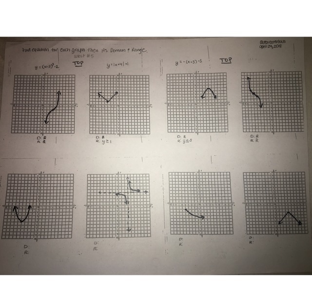 (1) For the parabola on the bottom row, the domain would be R and the range would be y ≥ -5