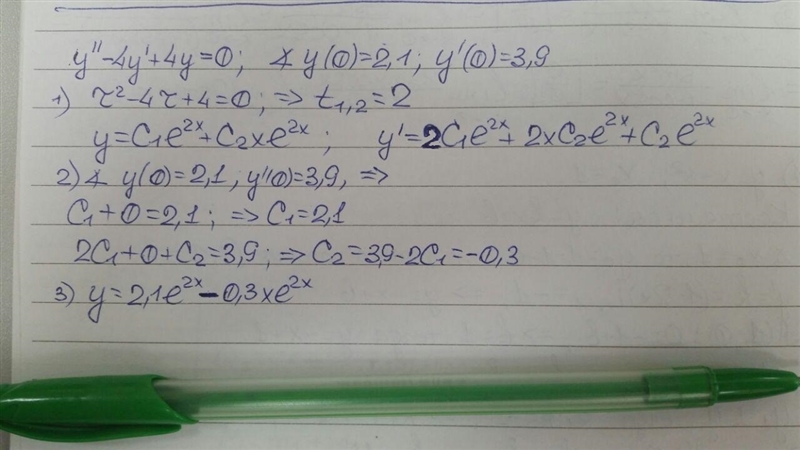 (tco 6) using partial fractions method solve the initial value problem y"-4y'+4y=0 given y(0)= 2.1 and y'(0)=3.9
