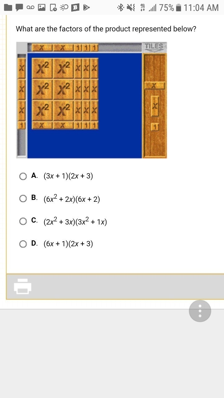 I believe your answer would be B) (6x² + 2x)(6x + 2).