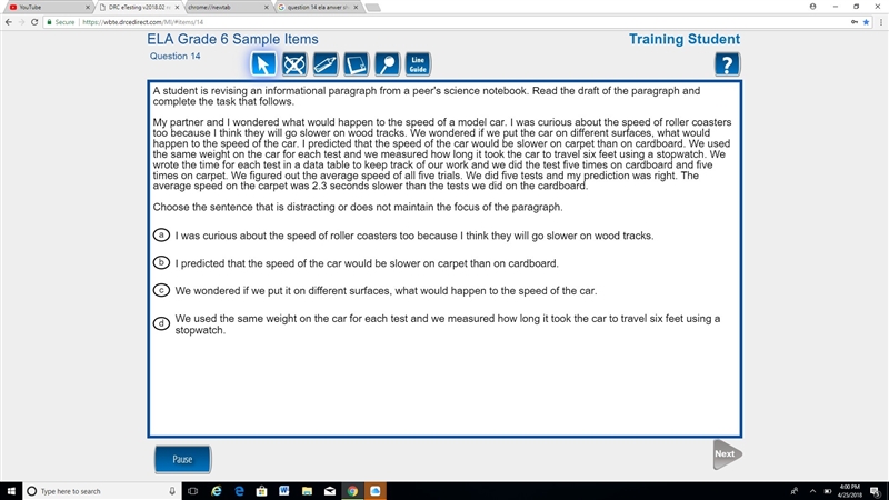 That is because the whole paragraph talks about a model car that they are testing but this student is wondering about roller coasters.
