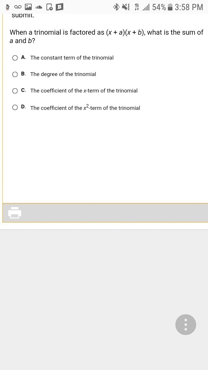 The sum of a and b will be the coefficient of the x term of the trinomial. This can be seen below.