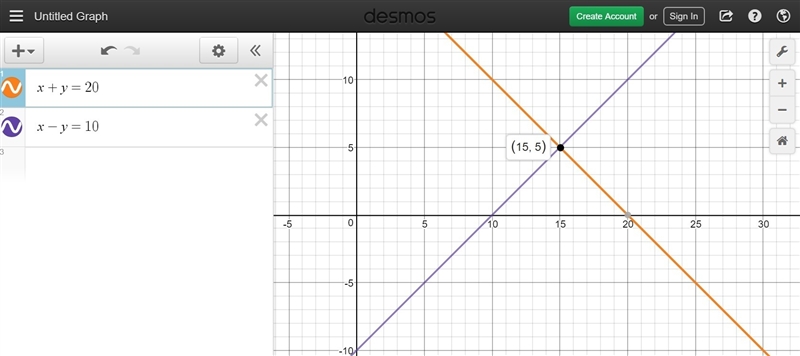 x+y=20-----> y=20-x-----> y=20-15------> y=5