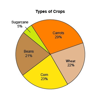 The circle graph shows the types of crops a farmer is growing. Which three types of crops combined make of the crops the farmer is growing? A. corn, sugarcane, wheat B. beans, c…