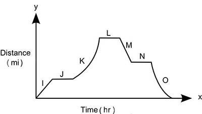 The graph shows a journey in a car. Which of the statements most likely describes the journey at the portion of the graph labeled J?