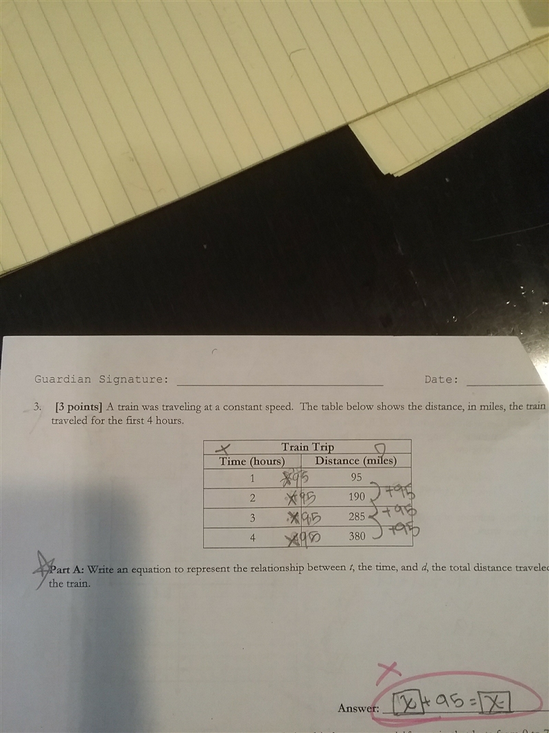 You found that speed(or slope of the line ) is constant and equal 95 mi/h.