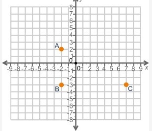 This is because the x value of the coordinate has to be the same x coordinate is point c, which means it has to be 7. And the y coordinate has to be the same as point A, which means that the y coordinate has to be 2.