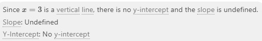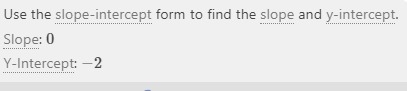 Graph y= -2 and x= 3 individually and state their slopes and y and x intercept forms for each