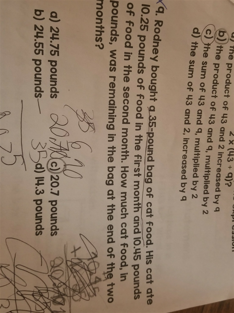 So 35 - 10.25 pounds equals how many pounds were left int he first month.