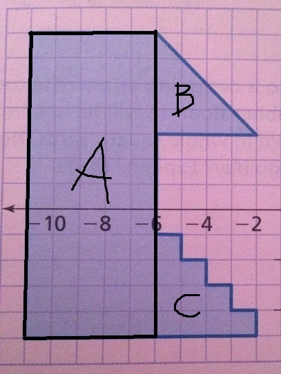 So the area of this polygon would be A + B + C = 60 + 8 + 10 = 78