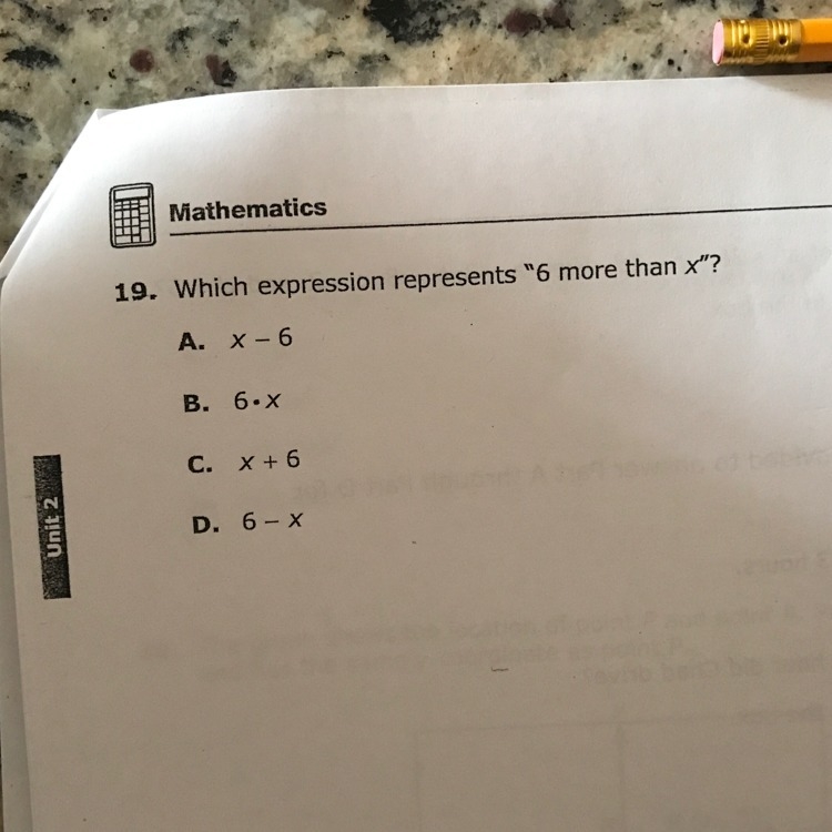 Which expression repressents “6 more than x”?