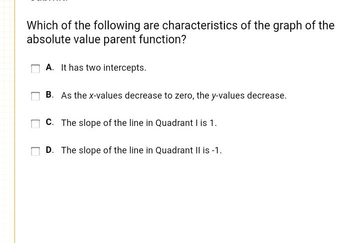The parent absolute function is y = |x| and its has only one x-intercept which occurs at x = 0