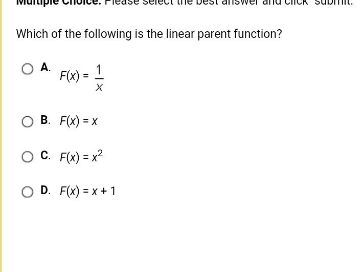 it has a slope equal to 1 and passes through the origin. All the other linear functions are derived from this parent function.