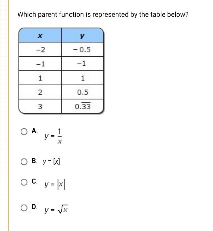 This means, the product of each x and y value must be 1 for parent reciprocal function. If you observe the table, the product of each pair is 1.