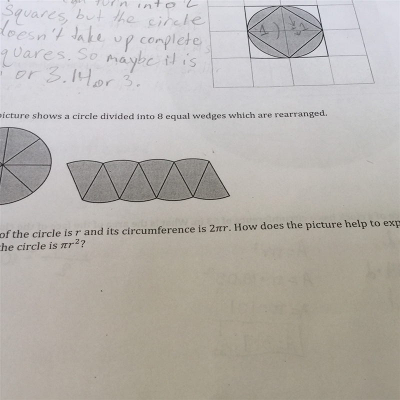 The variable r represents radius. The distance around the circle, if laid into a straight line, is 3 times as long, but has about 0.14 units left. The second power exponent tells us that the circle has two dimensions, not three like a sphere. I hope I answered your question, because some of it was cut off.